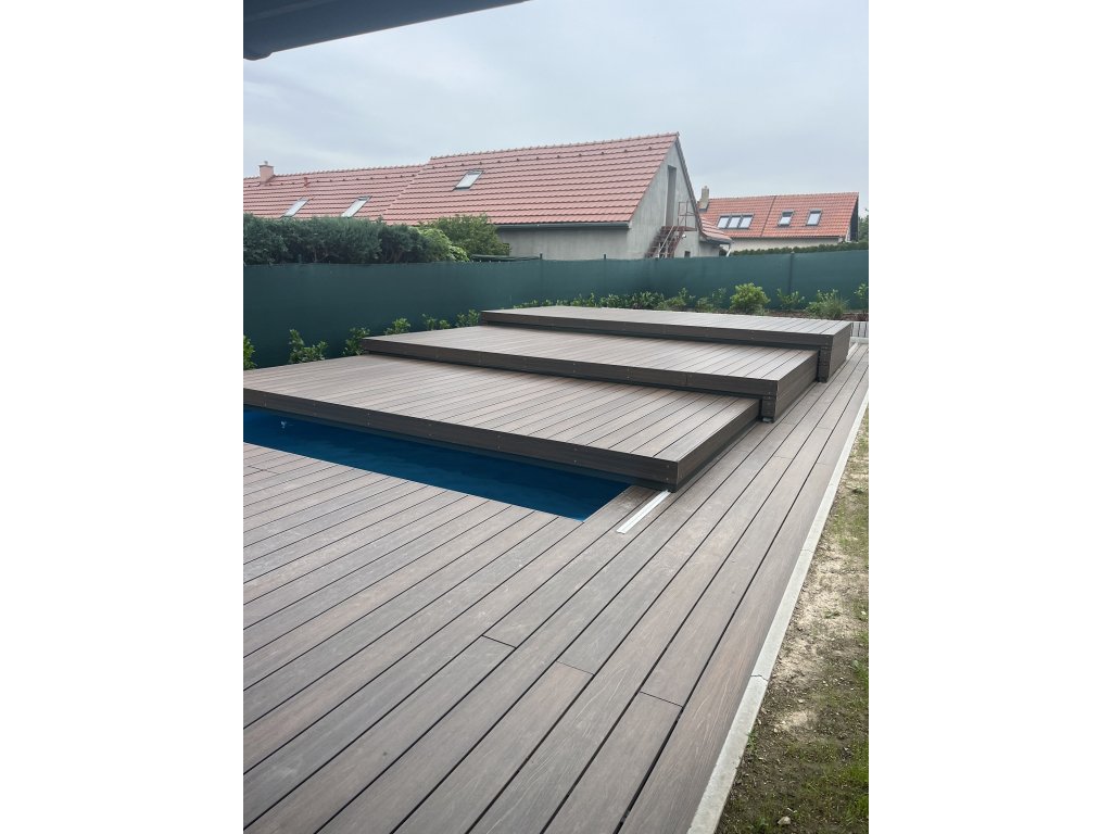Typizované zastřešení Slide Wood BASIC se vyrábí pro bazény o rozměru 4×2 m až 6×3 m ve variantách 1 velký segment nebo až 3 menší segmenty, které se zasouvají do sebe.